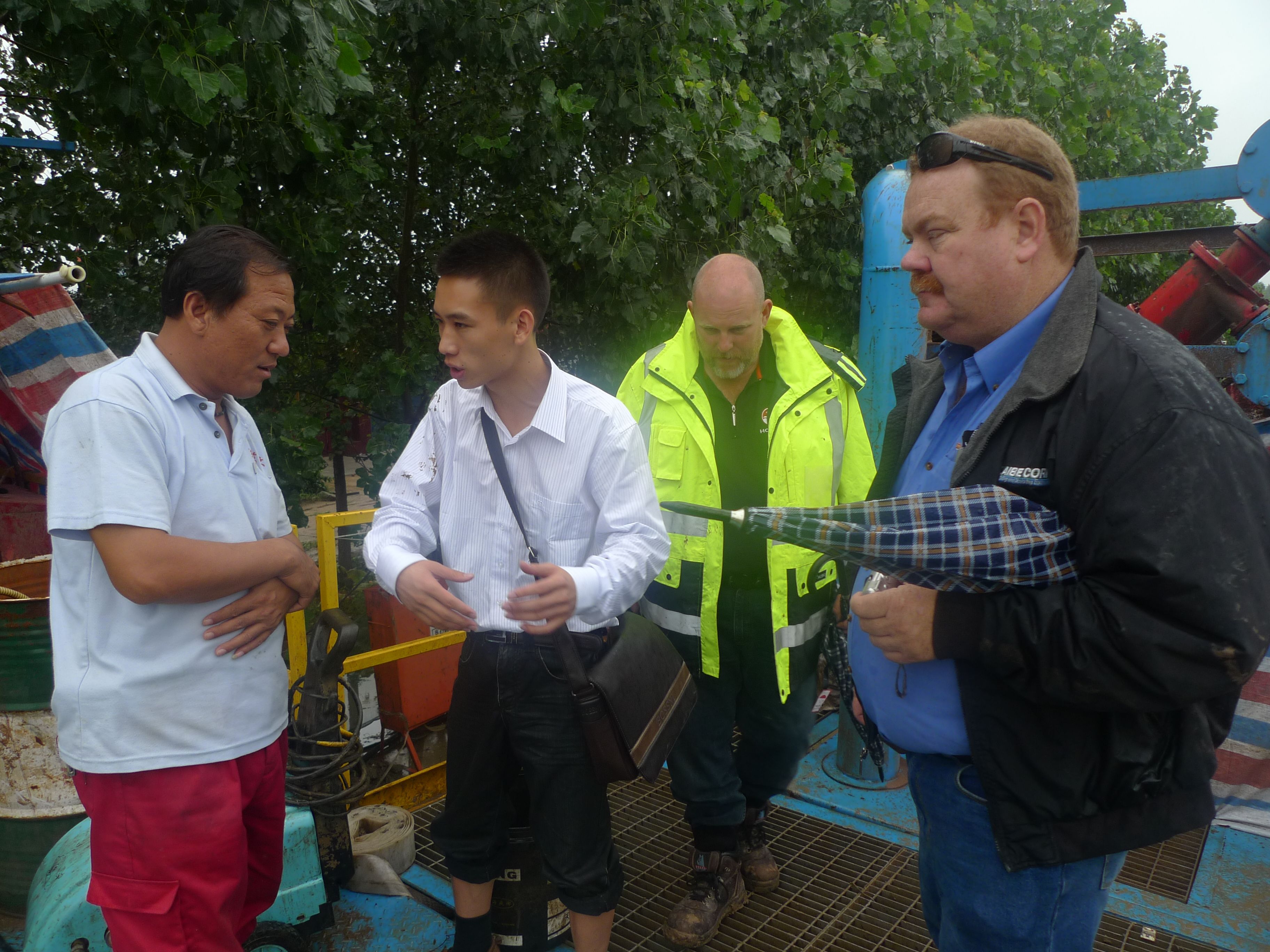 ????????????????????????????????????????????????????????????? ?澳大利亞客戶冒雨到到現(xiàn)場(chǎng)考察 ???????????????? 現(xiàn)場(chǎng)。到達(dá)現(xiàn)場(chǎng)后,應(yīng)客戶的要求,我們冒著雨登山泥漿罐,觀看設(shè)備的運(yùn)行情況。 益后,客戶豎起了大拇指。 話,他們還要購(gòu)進(jìn)2套定向穿越系統(tǒng)。