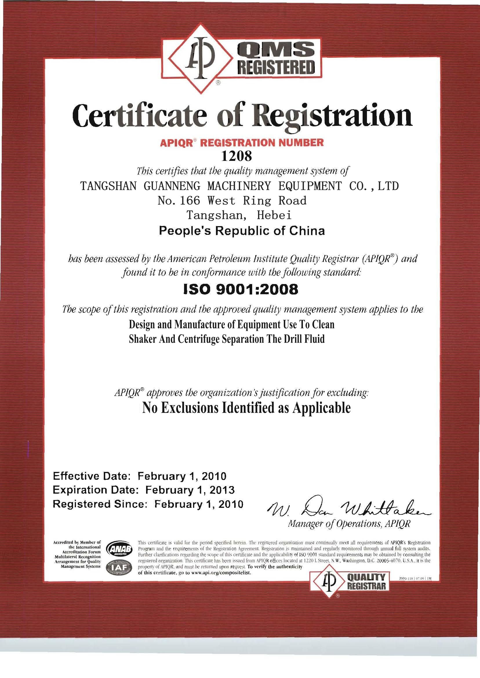 ????????????????????? ??????? 經(jīng)過半年的努力,我公司的API(API:American Petrolenm Institute)認(rèn)證在美國正式審核通過,并發(fā)給證書。 ???????從今年3月份起,根據(jù)國內(nèi)外客戶的需求和我公司的發(fā)展,在API老師的培訓(xùn)、指導(dǎo)下,我公司從生產(chǎn)、管理、采購、質(zhì)量 等方面進(jìn)行不斷的整改和提高,準(zhǔn)備了詳細(xì)的資料,順利通過美國石油協(xié)會標(biāo)準(zhǔn)的審核。 ?????????API認(rèn)證的通過,大大地滿足了國內(nèi)外客戶的需求,從而為我公司設(shè)備、系統(tǒng)跨入世界石油行業(yè)打下了堅實的基礎(chǔ)。
